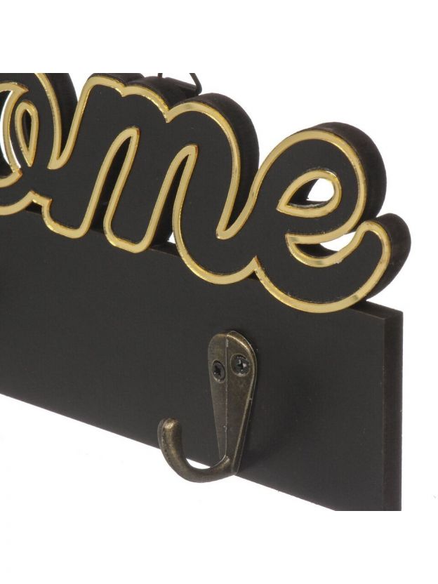 Ключница Welcome, 29.5х10.5 см, МДФ, 3 крючка, на декоративном панно, A200144, черная