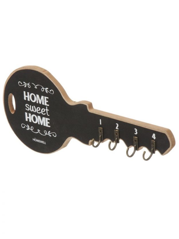Ключница Welcome, 29.5х14 см, МДФ, 4 крючка, на декоративном панно, A200146, черная