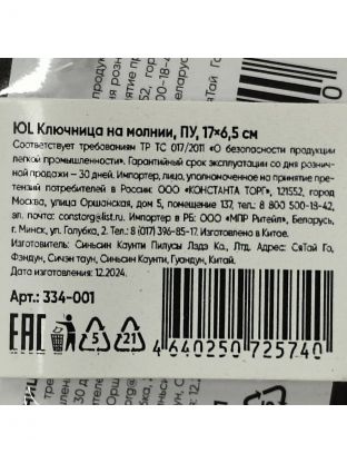 Ключница полиуретан, 17х6.5 см, ЮниLook, на молнии, в ассортименте, 334-001