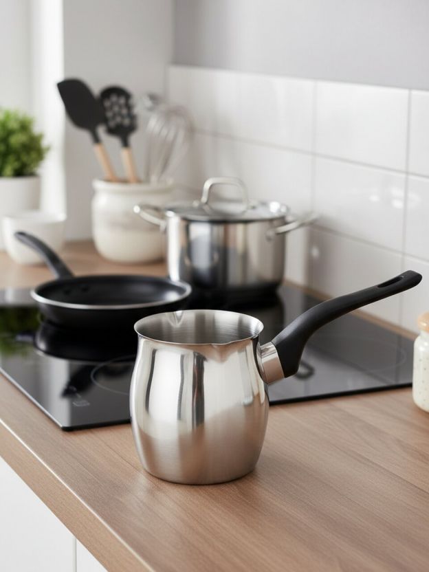 Турка из нержавеющей стали предназначена для варки кофе. Удобная бакелитовая ручка, не подвержена нагреванию. Благодаря небольшой стоимости и удобному функционалу данная турка станет отличным выбором для любителей кофе.