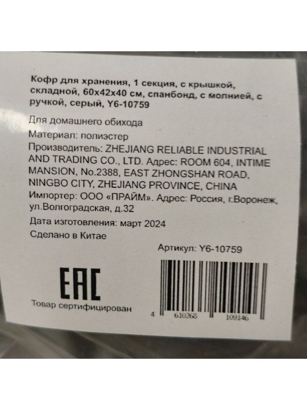Кофр Y6-10759 — это компактный и одновременно вместительный кофр для одежды. Подходит для хранения хозяйственных принадлежностей и игрушек. Имеет жесткие стенки и отлично держит форму.