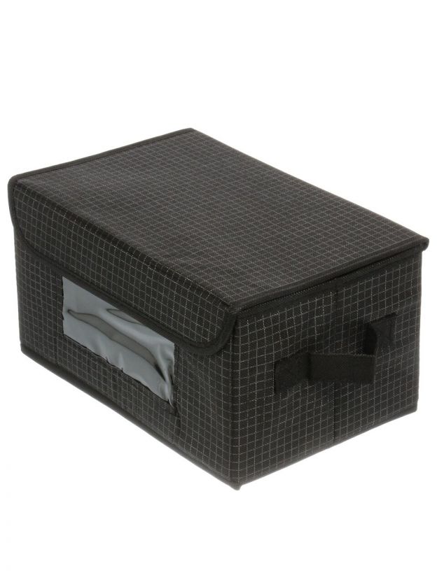 Кофр для хранения 29х19х15 см с крышкой и окном: компактное решение для порядка дома и дачи, стиль «черная клетка», складная конструкция.