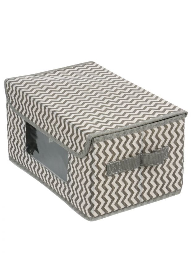 Кофр для хранения, с крышкой, складной, 29х19х15 см, серая волна, с окном, A190058
