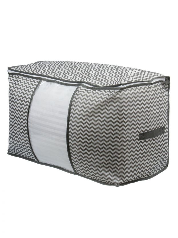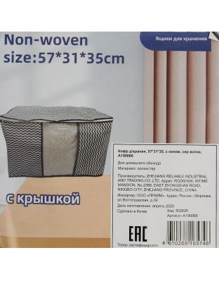 Размер кофра — 57х31х35 см. Он оптимален для хранения одежды, постельного белья, игрушек или сезонных вещей, подходит для шкафов и полок любого типа.