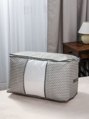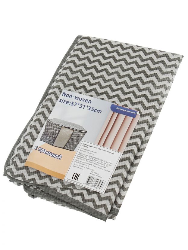 Кофр для хранения, с крышкой, складной, 57х31х35 см, с молнией, серая волна, с окном, A190066