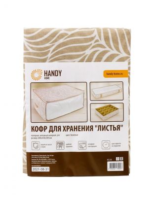 Кофр для хранения, с крышкой, складной, 60х45х30 см, с молнией, с ручкой, бежевый, Листья, UC-215