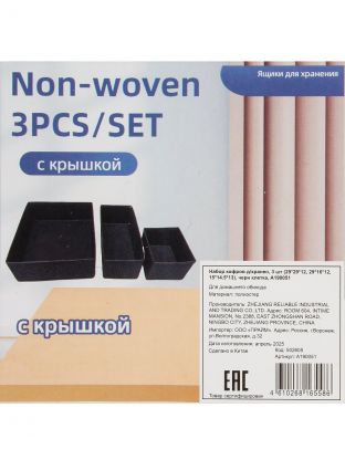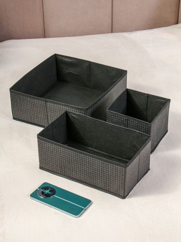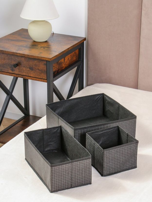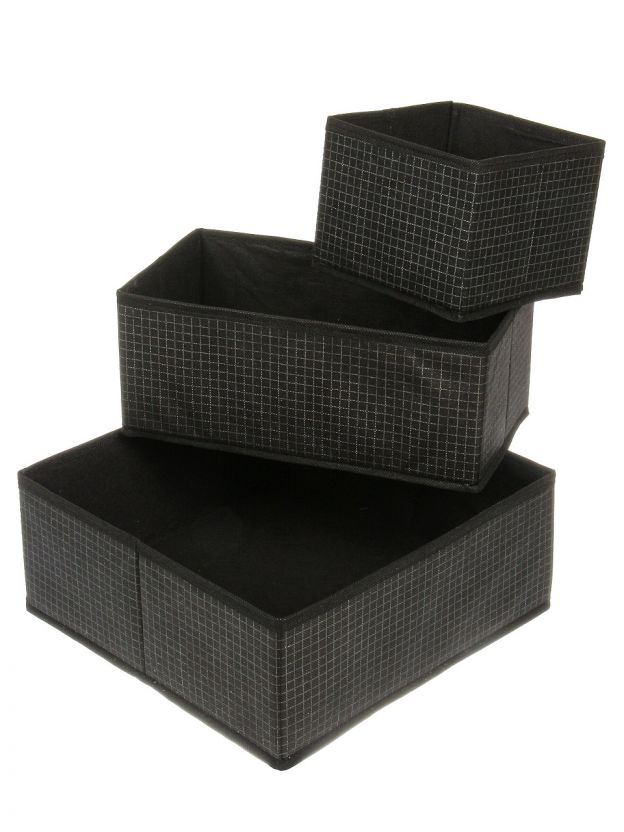 Кофр для хранения, складной, 3 шт, черная клетка, 29х29х12, 29х16х12, 15х14.5х13, A190051