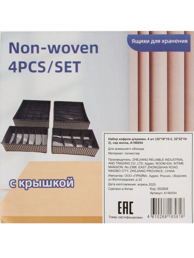 Кофр для хранения, складной, 4 шт, серая волна, 32х16х10-2, 32х32х10-2, A190054