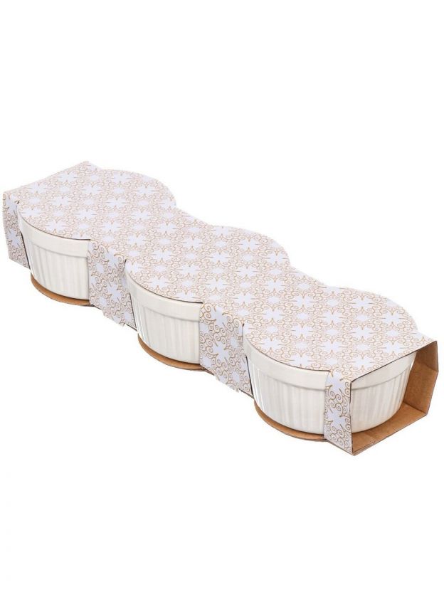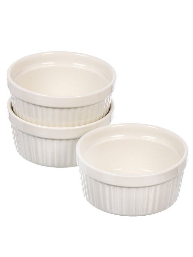 Кокотница керамика, 3 шт, 9х4х4 см, 0.15 л, круглая, белая, Y4-6552