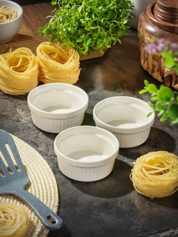 В отличие от металлических или силиконовых аналогов, керамика сохраняет тепло дольше и не влияет на вкус продуктов. Если вы ищете, чем отличаются керамические формы для выпечки — обратите внимание на отсутствие рифленого дна и крышки: это облегчает уход и подходит для большинства рецептов. Набор из 3 штук — выгодное решение для семьи или сервировки на праздники.