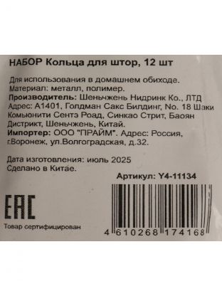 Кольца для штор Y4-11134 — это удобная фурнитура, которая обеспечивает легкое и бесшумное скольжение штор по карнизу. Благодаря сочетанию металла и пластика, кольца устойчивы к износу, не ржавеют и не оставляют следов на ткани. Если вы ищете, какие кольца выбрать для тяжелых или легких штор, этот комплект подойдет для большинства типов полотен.
