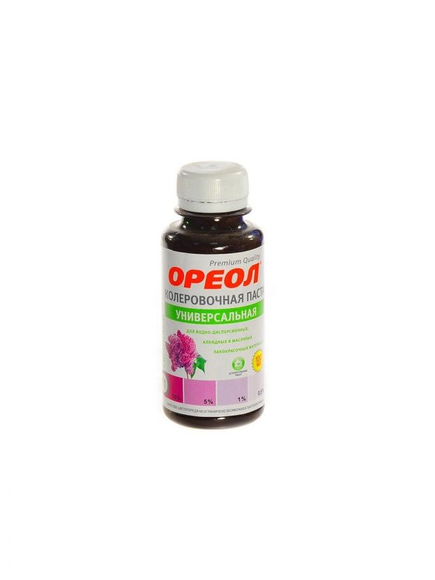Колеровочная паста универсальная предназначена для колерования эмалей, водно-дисперсионных и масляных красок, сухих строительных смесей, растворов, побелочных и других составов.