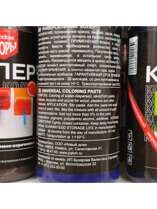Колеровочная паста Русские узоры предназначена для колерования красок, эмалей, лаков, лазурей для дерева, штукатурок и затирок на водной, масляной и других органических основах. Паста подходит для внутренних и внешних работ.