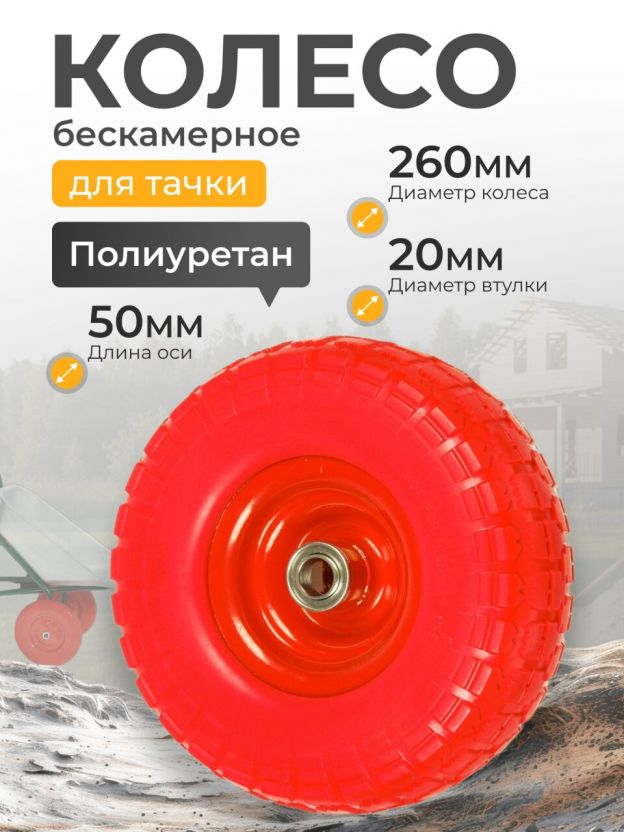 Полиуретановое колесо сочетает в себе прочность и легкость, что значительно увеличивает срок службы и устойчивость к механическим повреждениям. Материал шины не боится проколов, не требует подкачки и сохраняет форму даже при интенсивных нагрузках. Установка занимает минимальное время и не требует специальных инструментов, что особенно важно для владельцев дачных и строительных участков. Универсальный размер втулки (20 мм) и длина оси (50 мм) позволяют использовать изделие с большинством популярных моделей тачек.
