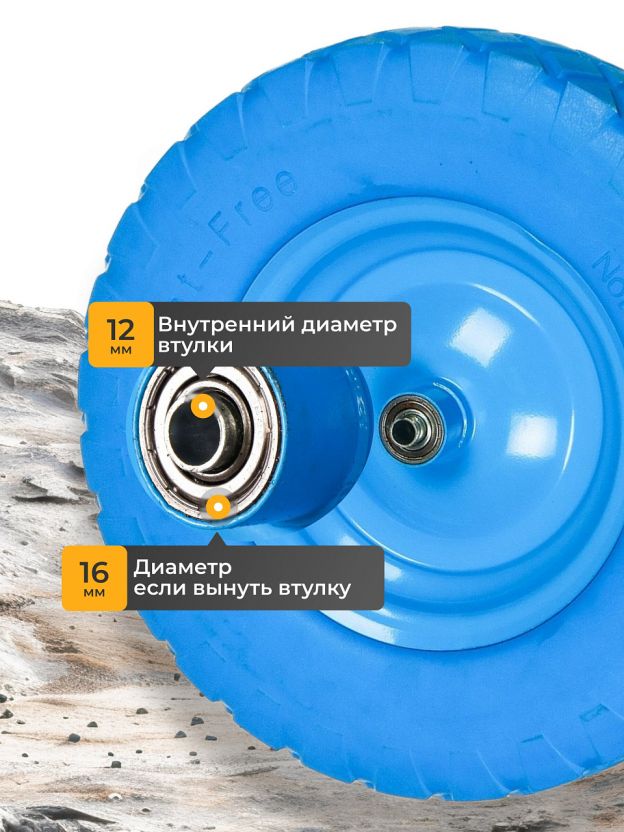 Покупка данного колеса позволяет забыть о частых заменах и ремонте, экономит время и средства при интенсивном использовании на дачном участке или стройке. Надежное и долговечное решение для любых задач, связанных с перевозкой строительных материалов, земли, удобрений и других грузов. Колесо для тачки полиуретан PU, 4.80/4.00-8, втулка D12/D16 мм – выбор для тех, кто ценит комфорт, надежность и экономию.