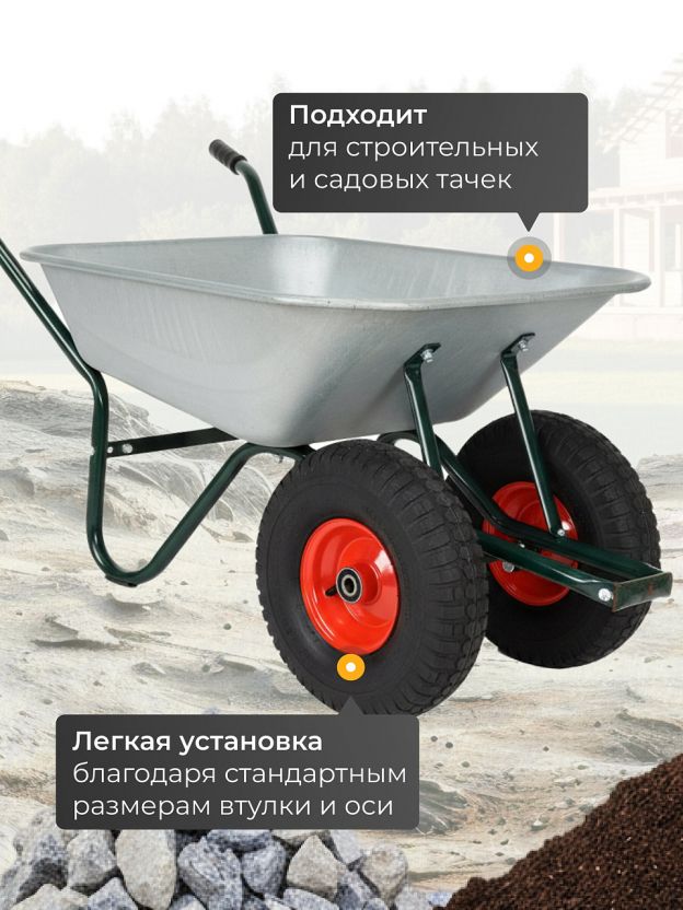 Колесо подходит для большинства стандартных строительных и садовых тачек, что делает его универсальным выбором для владельцев загородных домов и дачных участков. Втулка диаметром 16 мм и длиной 90 мм с подшипником обеспечивает легкую установку и плавное вращение без лишних усилий. Продукция бренда Мастер Инструмент известна своим качеством и надежностью. Колесо доступно также для оптовых покупателей, что дает возможность выгодно приобрести необходимое количество товара для масштабных работ или бизнеса.