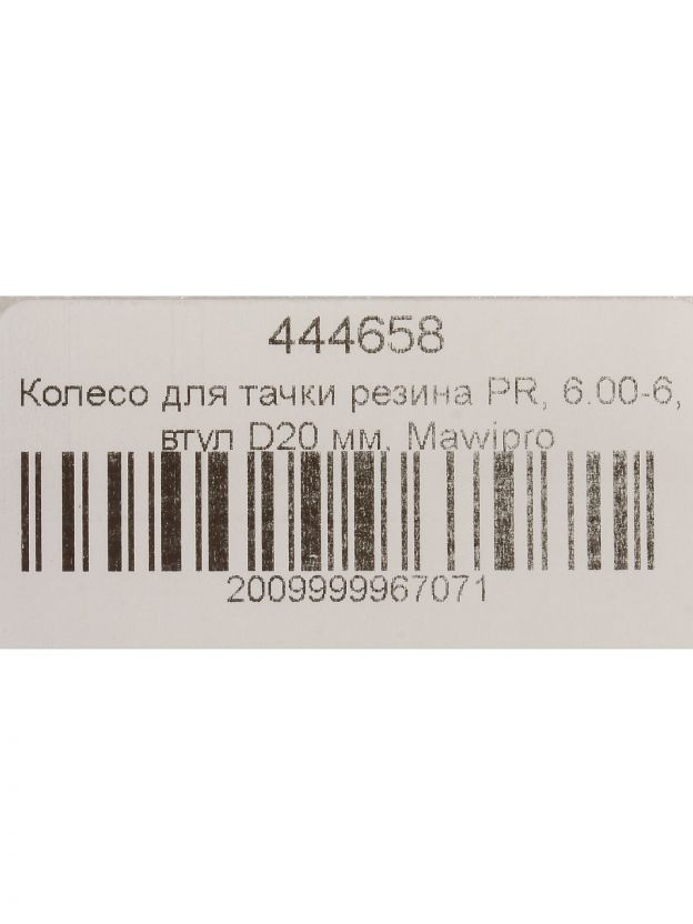 Колесо для тачки резина PR, 6.00-6, втулка D20 мм, Mawipro