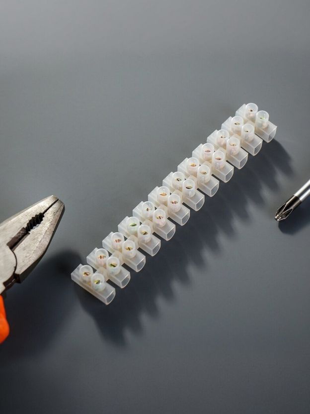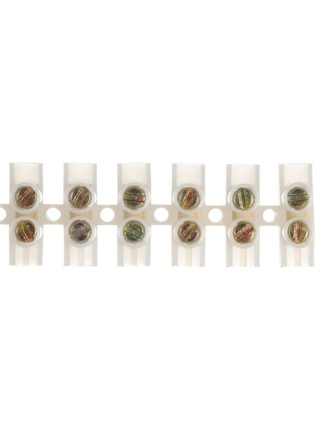 Применяются для винтового соединения проводников, защищая провод от повреждения и исключая возможность замыкания на корпус электроустановки. Изоляционный каркас изготовлен из белого негорючего прозрачного полиэтилена, клемма и винты – латунь.