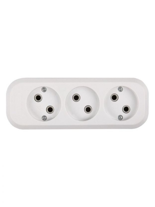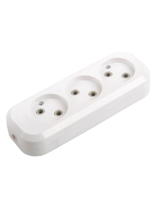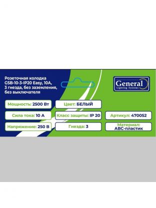Колодка розеточная 3 гнезда, 2 полюса, без заземления, 10 А, 220 В, 2.2 кВт, без выключателя, IP20, General Lighting Systems, Easy GSB-10-3-IP20, 470052