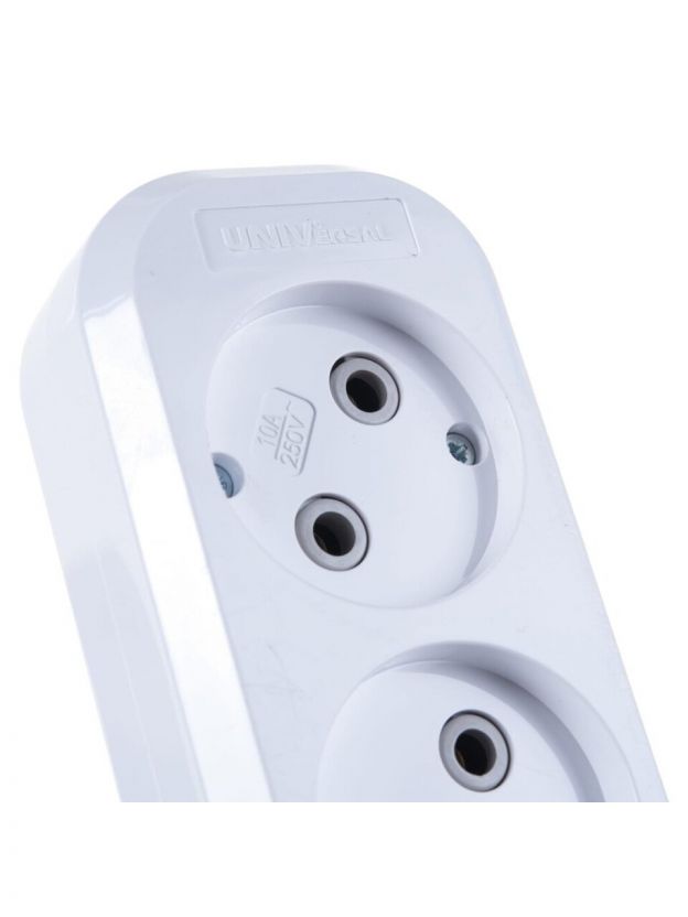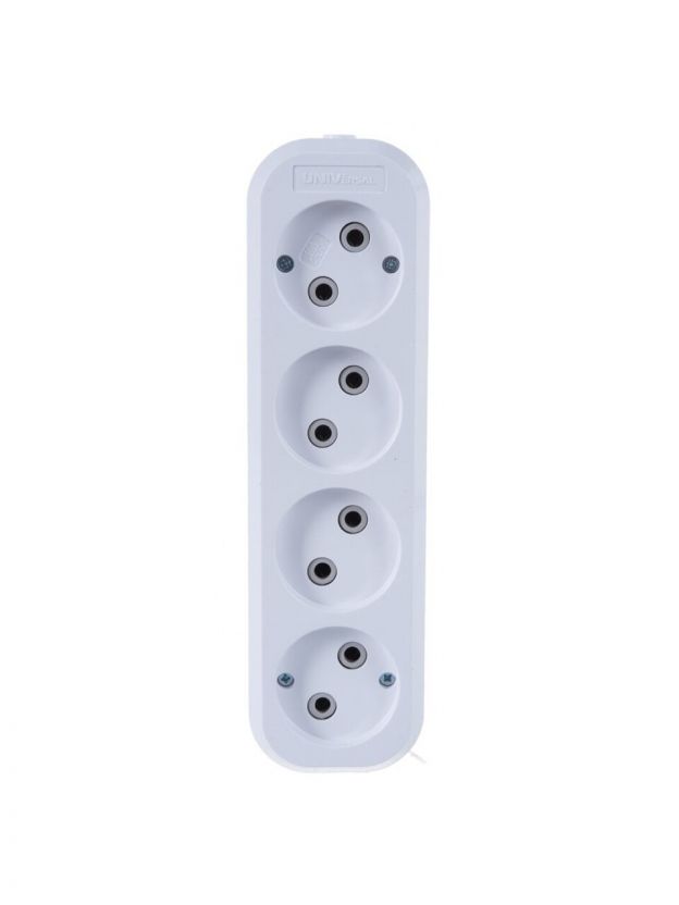 Колодка розеточная 4 гнезда, 4 полюса, без заземления, 10 А, 2.2 кВт, белый, UNIVersal, E204