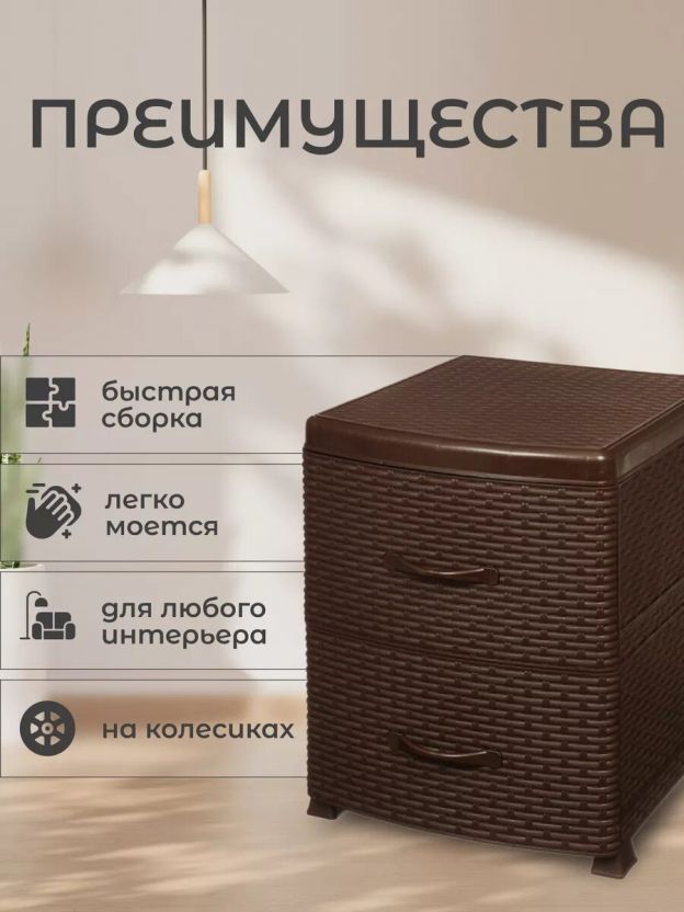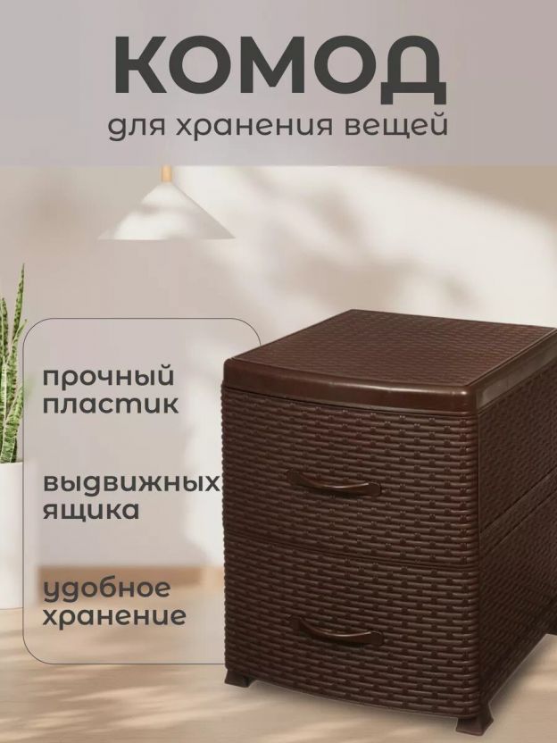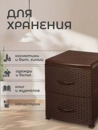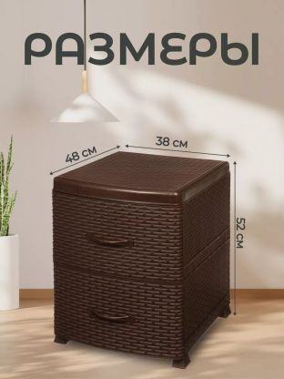 Комод 2 ящика, Ротанг, 38х48х52 см, коричневый, 0355/1/035501, Violet