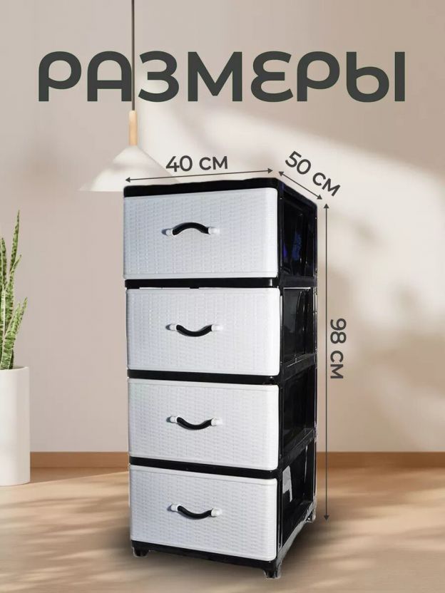 Комод 4 ящика, Дюна, 40х50х94 см, черно-белый, 04014, Dunya Plastik