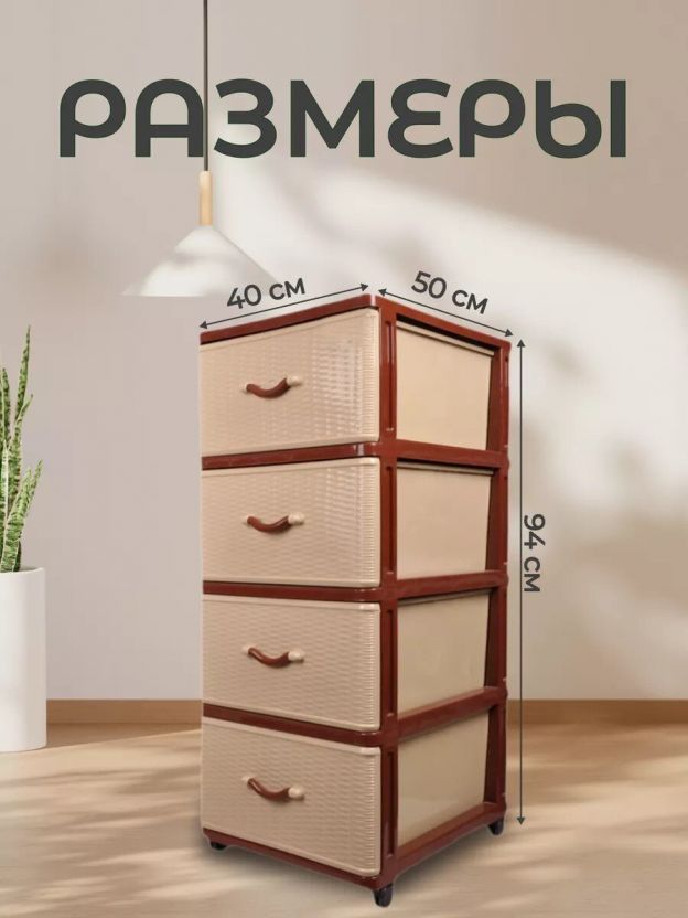 Комод 4 ящика, Дюна, 40х50х94 см, коричнево-бежевый, 04014, Dunya Plastik