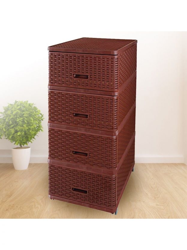 Комод 4 ящика, Дюна, 40х50х98 см, коричневый, плетеный, 04054, Dunya Plastik