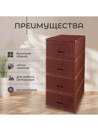 Комод 4 ящика, Дюна, 40х50х98 см, коричневый, плетеный, 04054, Dunya Plastik