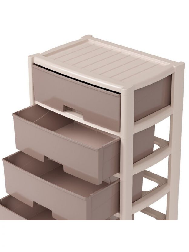 - Цельная конструкция перегородок обеспечивает прочность и долговечность комода.