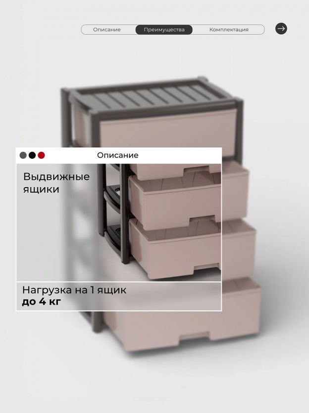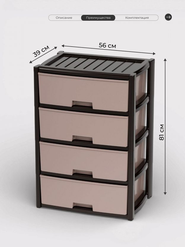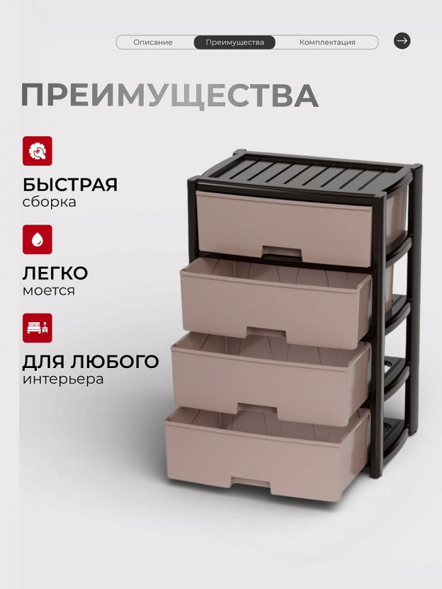 - эффективное использование пространства: благодаря четырем вместительным ящикам все ваши вещи будут на своих местах;