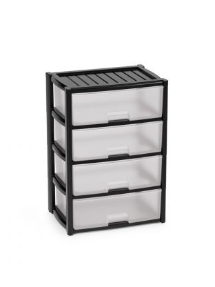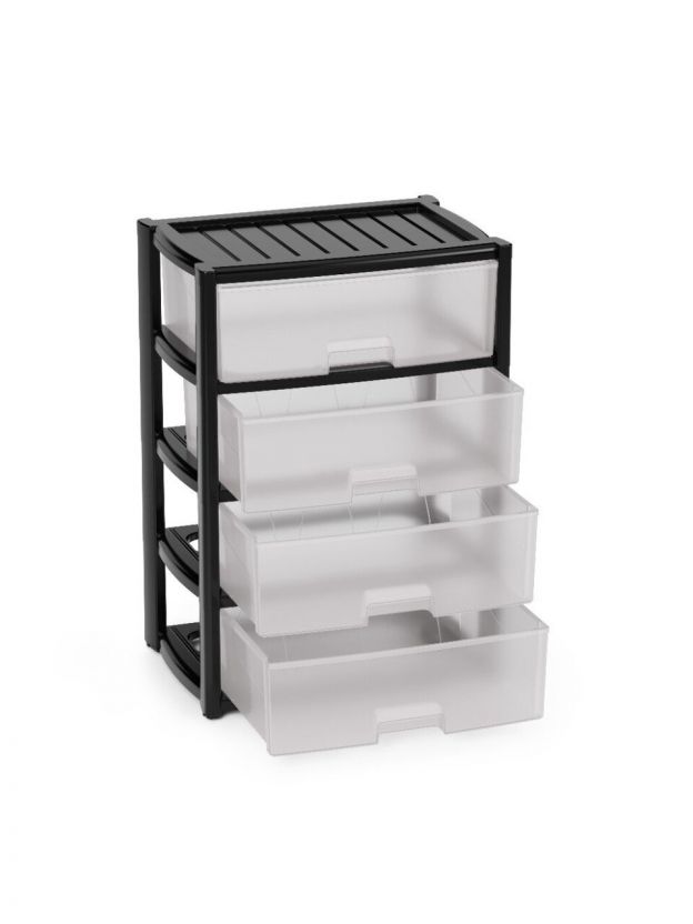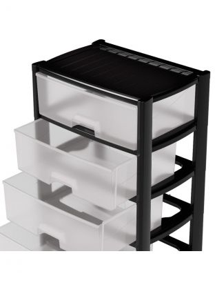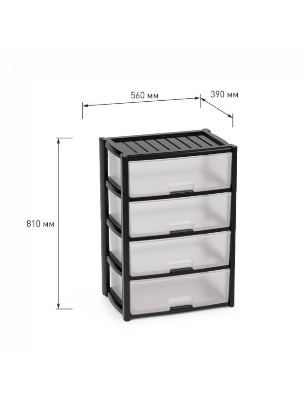 Комод "Колорит" изготовлен из прочного полипропилена, что гарантирует его устойчивость к внешним воздействиям и долговечность. Черный цвет корпуса придаст вашему интерьеру современный и стильный вид, а компактные размеры позволят разместить его даже в небольших помещениях. Этот комод станет идеальным выбором для хранения одежды, белья и других предметов, обеспечивая порядок и уют в вашем доме.