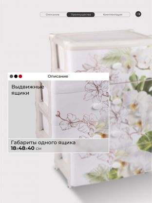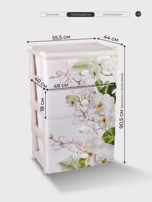 Комод 4 ящика, Орхидеи, 55.5х44х90.5 см, М2638, Альтернатива