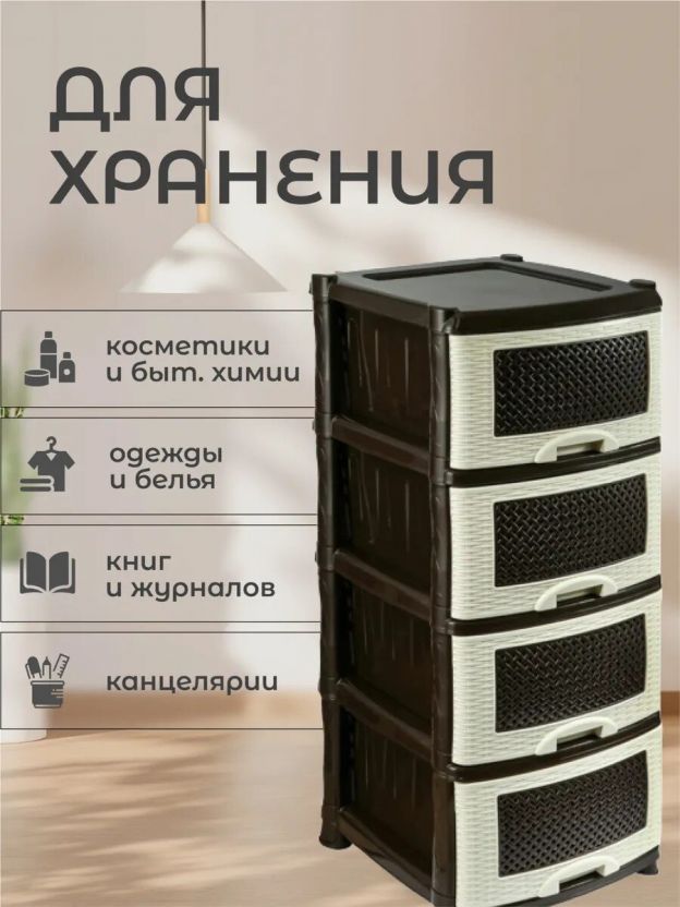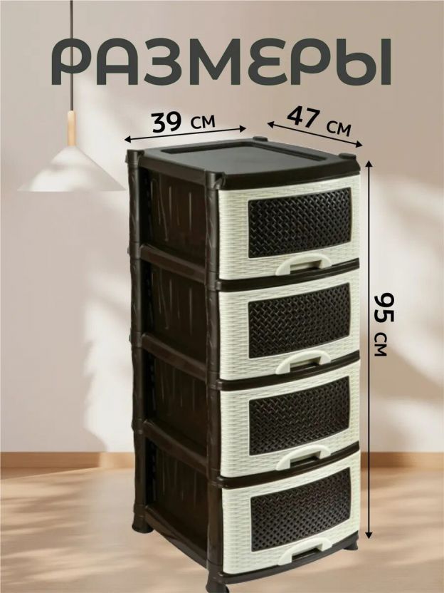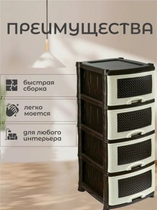 Комод 4 ящика, Плетенка, 39х47х95 см, бежево-коричневый, 0354/035401, Violet