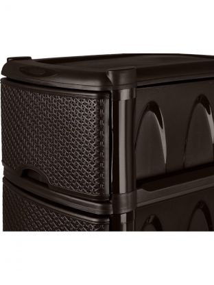 Представляем комод с 4 ящиками Rattan от бренда Keeplex, который станет стильным и функциональным дополнением любого интерьера. Изготовленный из качественного пластика, комод выполнен в элегантном цвете темного каштана, что добавляет ему изысканности и гармонично вписывается в любой интерьер. Этот комод не только украсит пространство, но и поможет организовать хранение вещей, обеспечивая удобный доступ к ним.