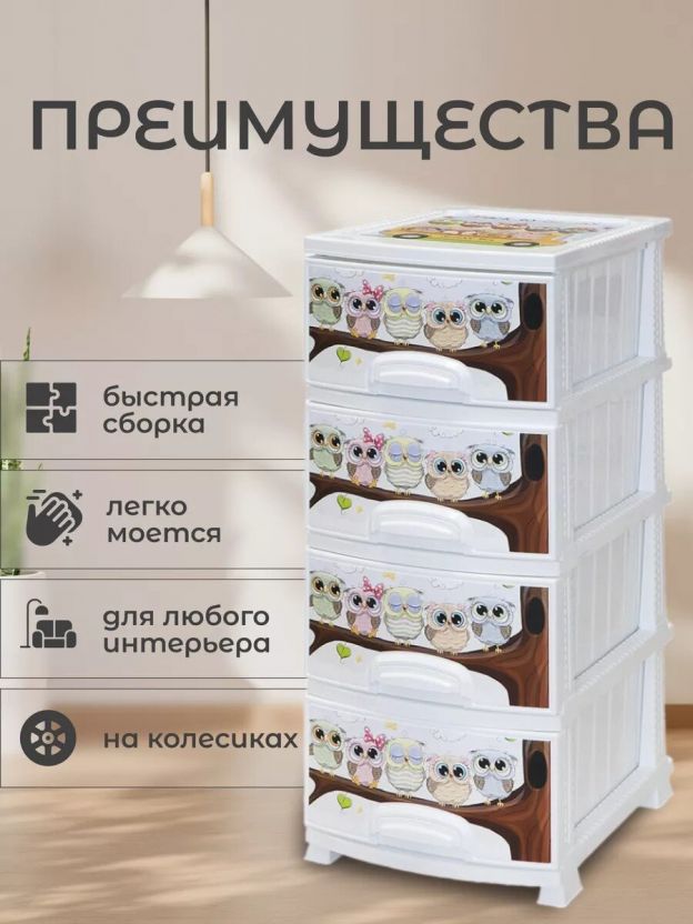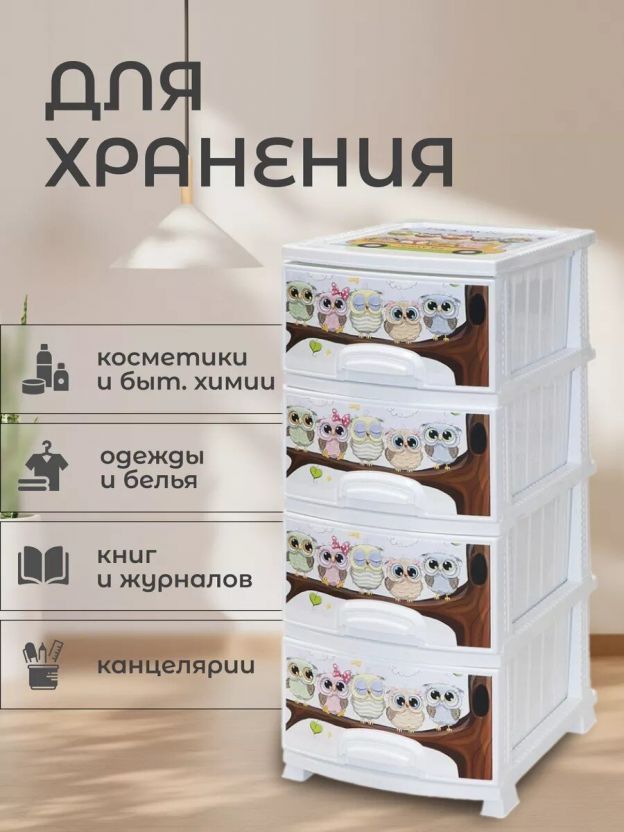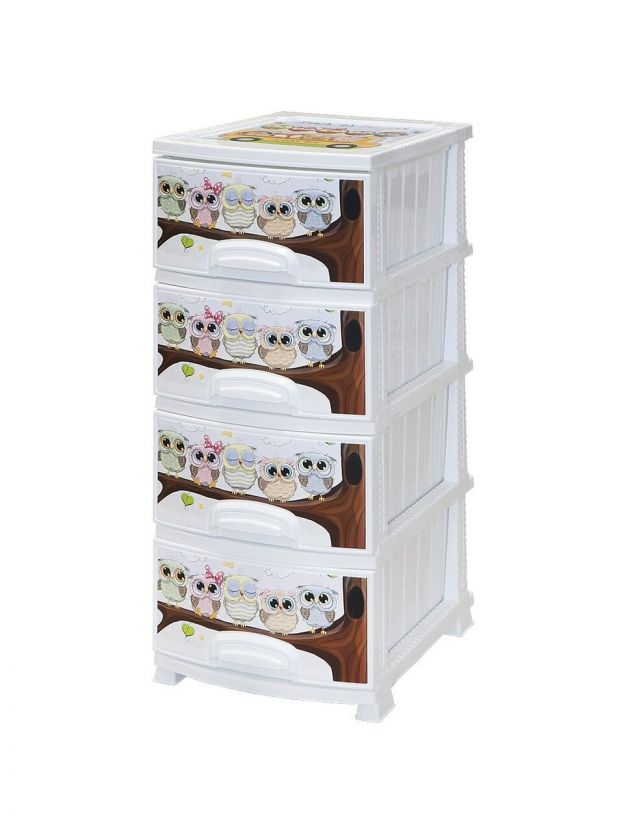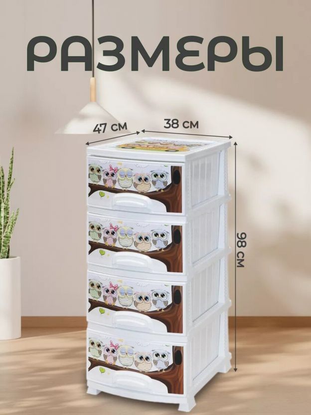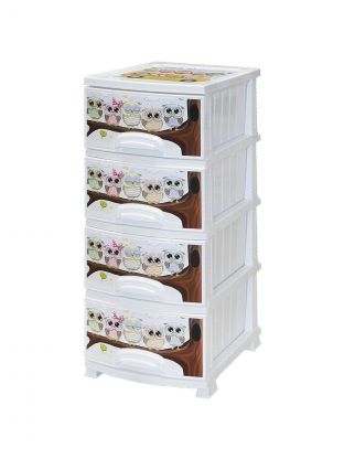 Комод детский 4 ящика, Совушка, 38х47х98 см, белый, Росспласт, РП-421