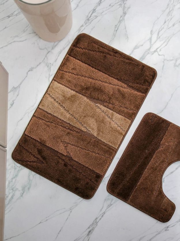 Комплект ковриков для ванной Aqua-Prime Enigma 2 шт: влаговпитывающие, антискользящие, 12 мм, коричневые — уют и безопасность для вашей ванной комнаты.