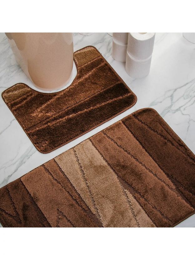 Комплект ковриков для ванной, антискользящий, 2 шт, 0.5х0.8, 0.4х0.5 м, 12 мм, коричневый, Aqua-Prime, Enigma