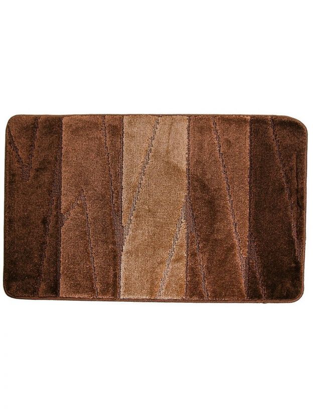 В комплекте два коврика: большой — 80х50 см, маленький — 50х40 см, оба толщиной 12 мм, форма прямоугольная, цвет коричневый.