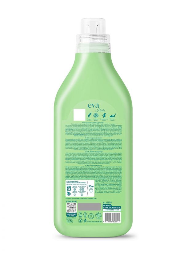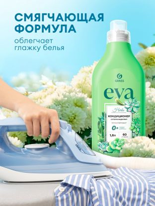 Гипоаллергенный кондиционер для белья "EVA" herbs идеально подходит для чувствительной и нежной кожи, бережно ухаживает за всеми видами ткани, полностью выполаскивается из одежды, поддерживает эластичность волокон, придает белью мягкость и приятный аромат на продолжительное время.
