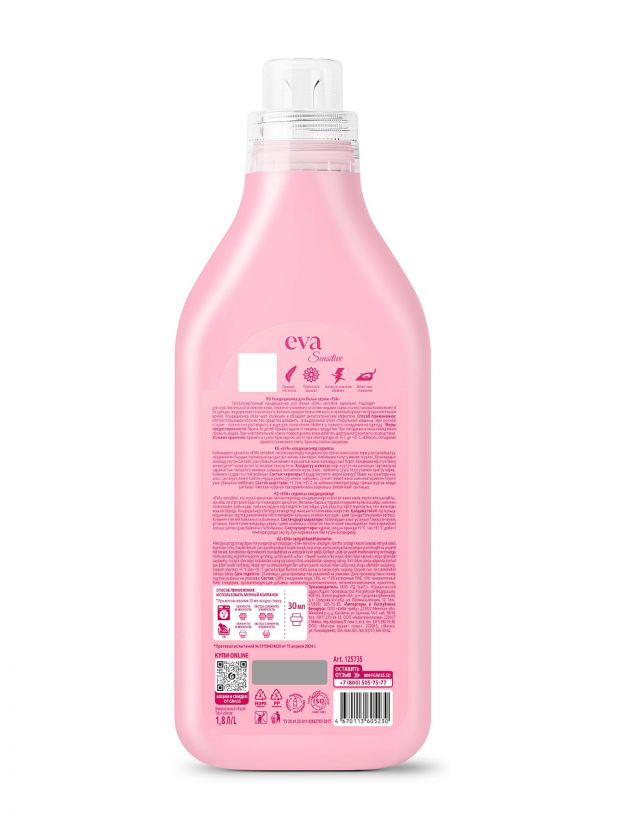 Кондиционер для белья "EVA" sensitive идеально подходит для машинной и ручной стирки всех видов ткани.