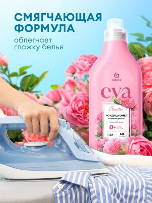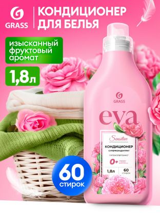 Кондиционер для белья Grass Eva Sensitive 1.8 л — концентрат для мягкости, свежести и защиты ткани. Экономия до 50% и забота о чувствительной коже.