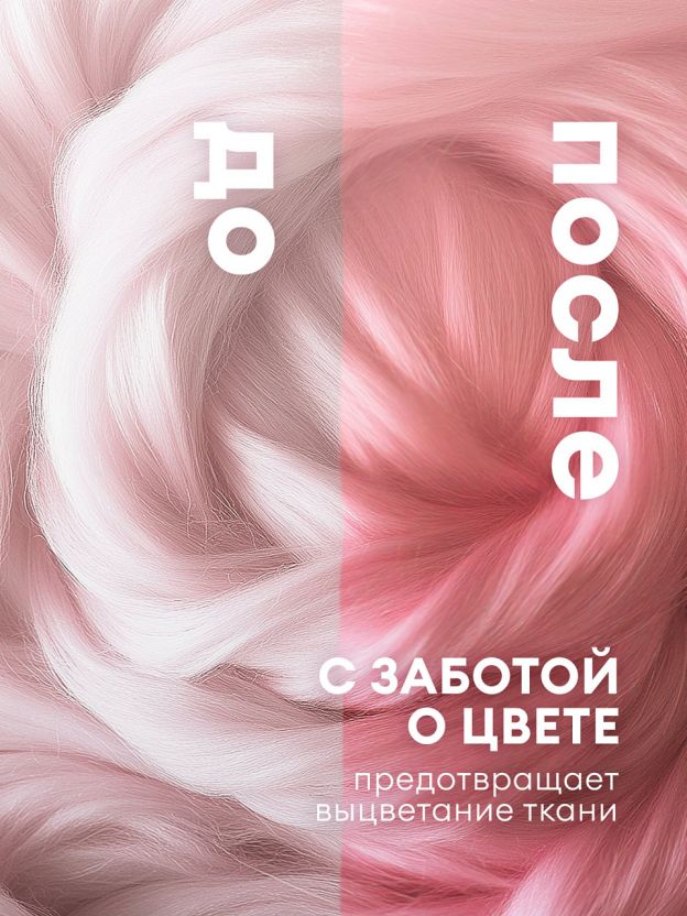 Благодаря своей особой формуле сохраняет цвет и структуру волокон ткани.