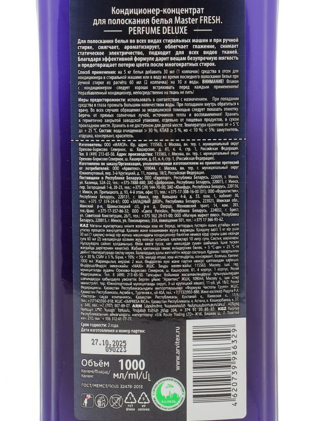 Как использовать кондиционер для белья Master Fresh? Просто добавьте нужное количество в отсек стиральной машины или в воду при ручной стирке. Подходит для хлопка, синтетики, льна и смешанных тканей. Если вы ищете купить недорого кондиционер для белья для дачи или дома — этот вариант сочетает цену и качество, подтверждённые опытом покупателей.