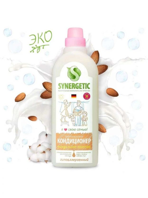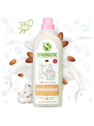 Кондиционер для белья Synergetic, 1 л, Миндальное молочко, концентрат