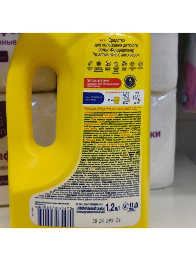 Кондиционер для белья Ушастый нянь, 1.2 л, для детских вещей, с алоэ вера