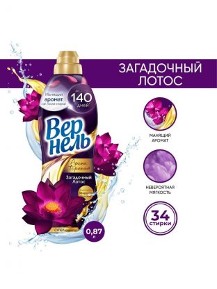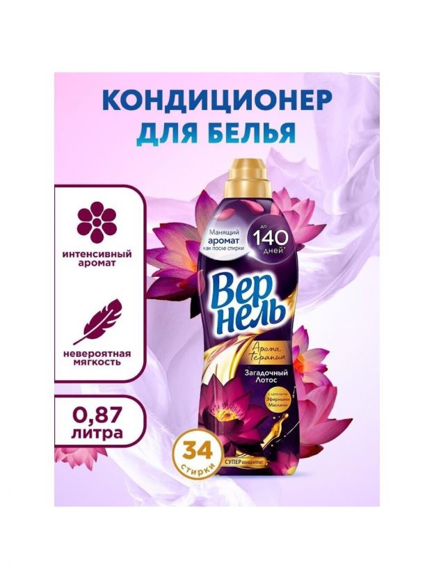 Кондиционер для белья Вернель, 0.87 л, Ароматерапия Загадочный лотос
