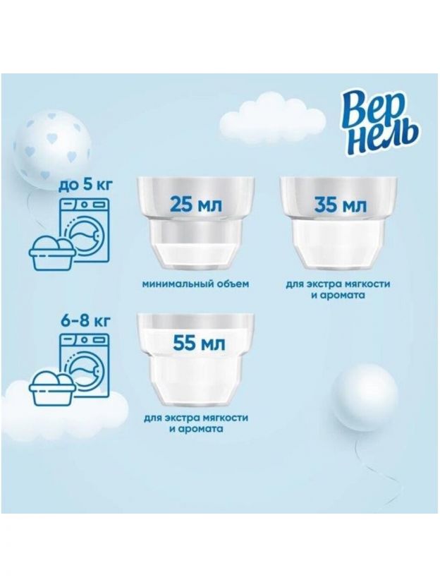 Кондиционер Вернель Детский придает белью невероятную мягкость и свежесть.
