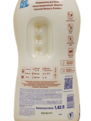 Кондиционер для белья Вернель 1.82 л «Мягкость Хлопка»: до 30 стирок свежести, деликатный уход, экономия времени и денег для заботливых семей.