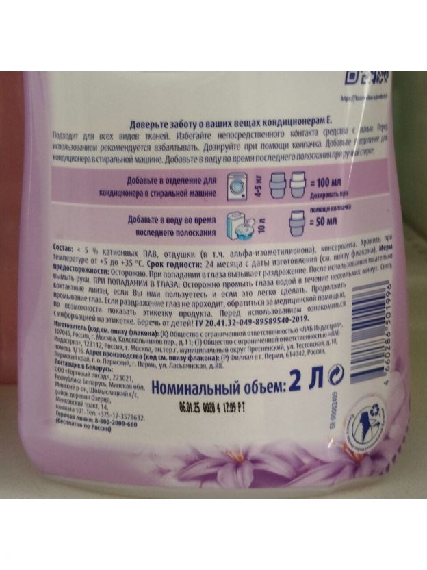 Кондиционер E облегчает глажку и обладает антистатическим эффектом.